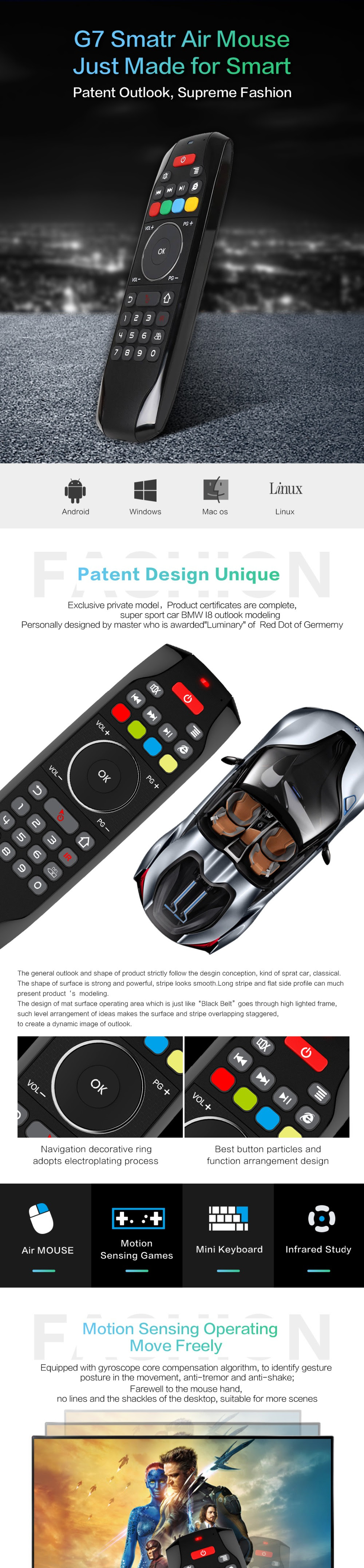 10pcs/lot G7 2.4GHz Fly Air Mouse Wireless Mini Keyboard Remote Control with IR Learning Function for Android TV Box Quinn Christiana Rating: 4.8 out of 5